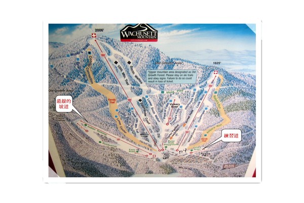 綠色的坡道是最簡單的,再來是藍色的,最難的就是黑色的雪道啦!那個又高又長的就是黑色的。現場有四個Lift,但最緩的坡道竟然也有練習道的四五被以上長。坡度也比較抖,雖然周星星很想上去,但最後還是被Lift的人勸退了,他勸我們學第二天以上再搭Lift。但其實Podo隔幾天也去了這個雪場,且沒上課,一到就搭Lift衝上去,一共玩了七八趟吧!真是羨慕死人。
